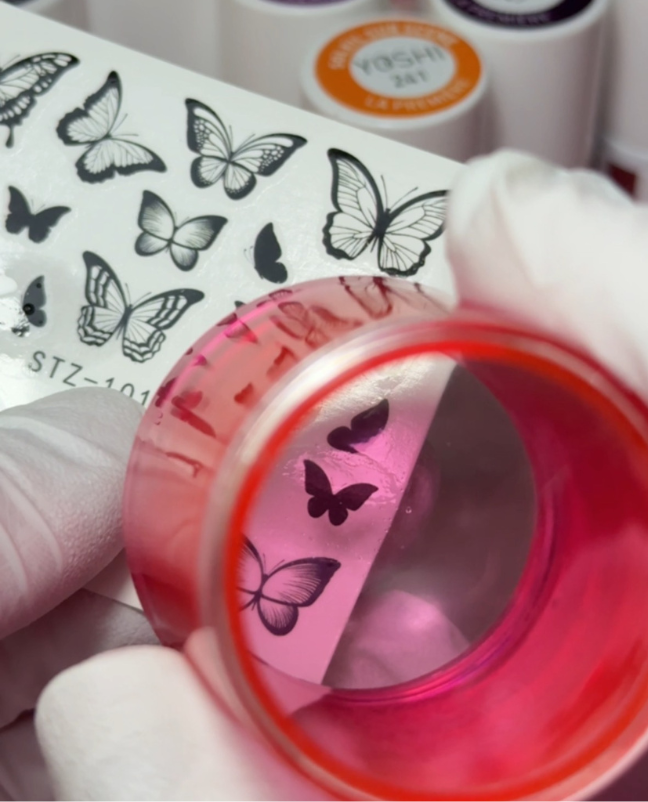 Wiele stylistek ma problem z prawidłowym odbijaniem folii transferowej na naznokciach. Zwykle dzieje się tak, gdy baza pod zdobienie nie posiada warstwy inhibicyjnej lub jest zbyt słaba, aby folia dobrze się przykleiła. Podobnie jest z naklejkami wodnymi – najszybciej aplikuje się je przy pomocy stempla. Aby naklejki szybko i precyzyjnie przenieść na paznokieć warto również pamiętać o odpowiedniej technice, która decyduje o trwałości i estetyce zdobienia.