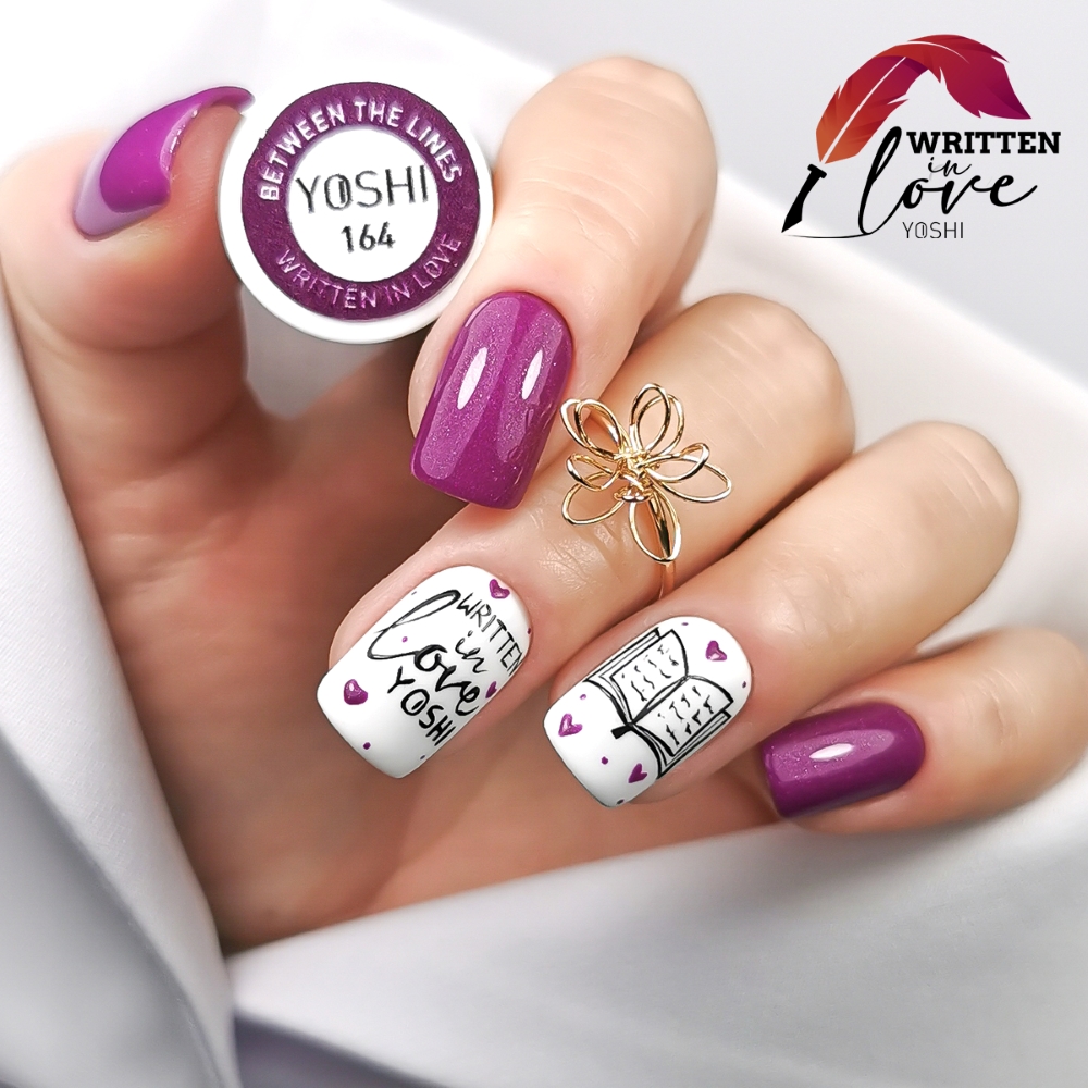 Written in Love to wyjątkowa kolekcja lakierów hybrydowych od Yoshi, stworzona z myślą o tych, którzy chcą wyrażać emocje nie tylko słowami, ale i kolorami. Każdy odcień skrywa w sobie opowieść o miłości – od pierwszych, elektryzujących spojrzeń, przez pełne tajemnic chwile, aż po romantyczne zakończenia. To nie tylko lakiery, to narzędzie do tworzenia stylizacji pełnych uczuć i niezapomnianych wspomnień. Niech Twoje paznokcie staną się wyjątkowym listem miłosnym napisanym kolorami.